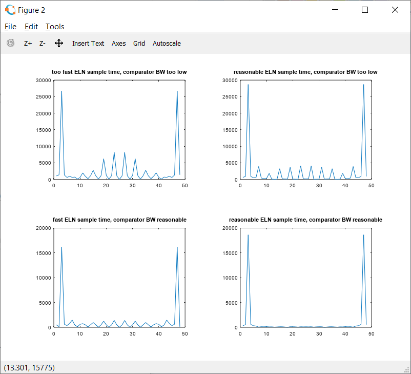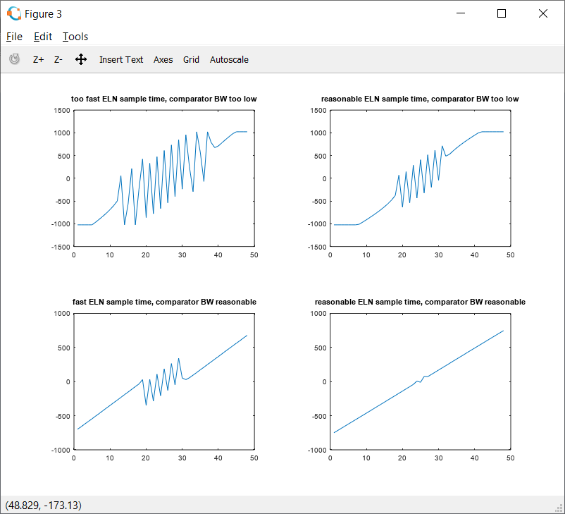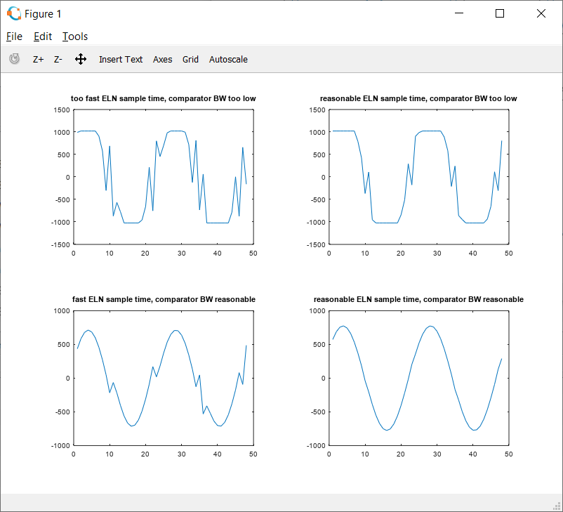 The Octave script shows the different results while varying a sub block parameter (bandwidth of the comparator) and the ELN sample time.